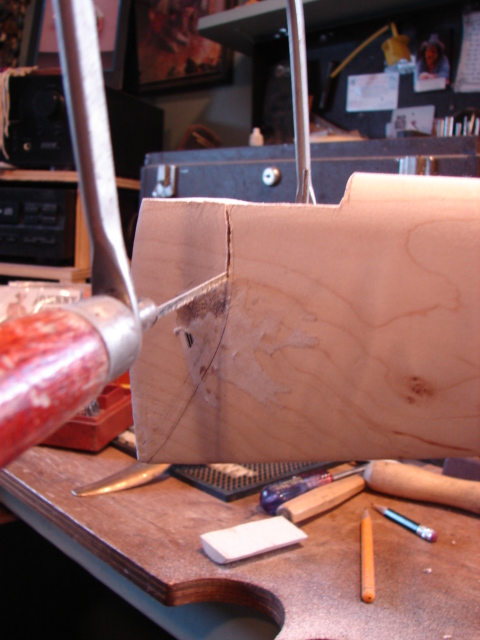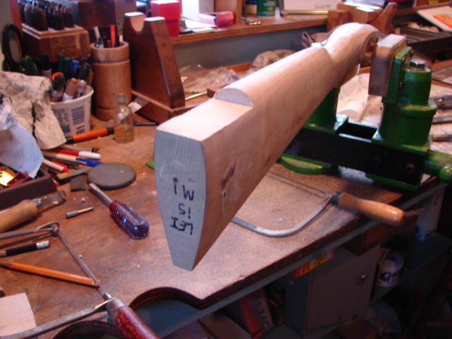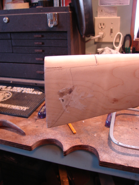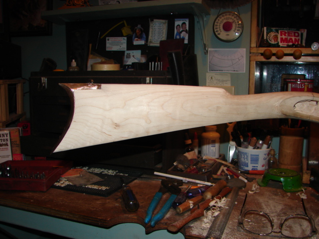 First, I laid out the pattern, then I cut it with the coping saw.  Then using lamp black, I inlet the part.  I used my large half round bastard file to remove the black spots as it went on.  Once it was inletted, I attached it with screws and took the remaining wood down to the brass using a spoke shave I bought at Ezekiel Bays auction house.  This took me about 2 hours from start to finish.