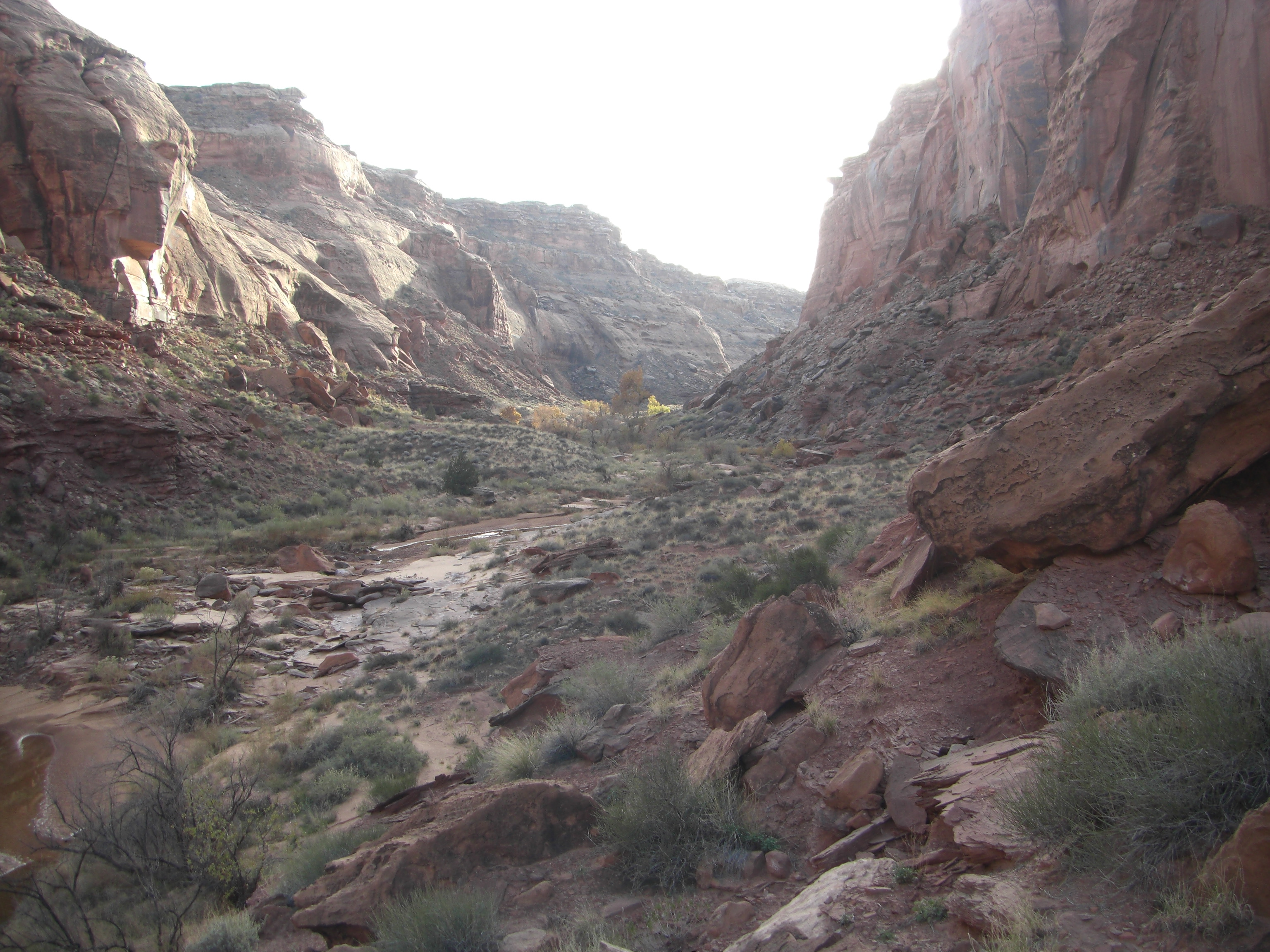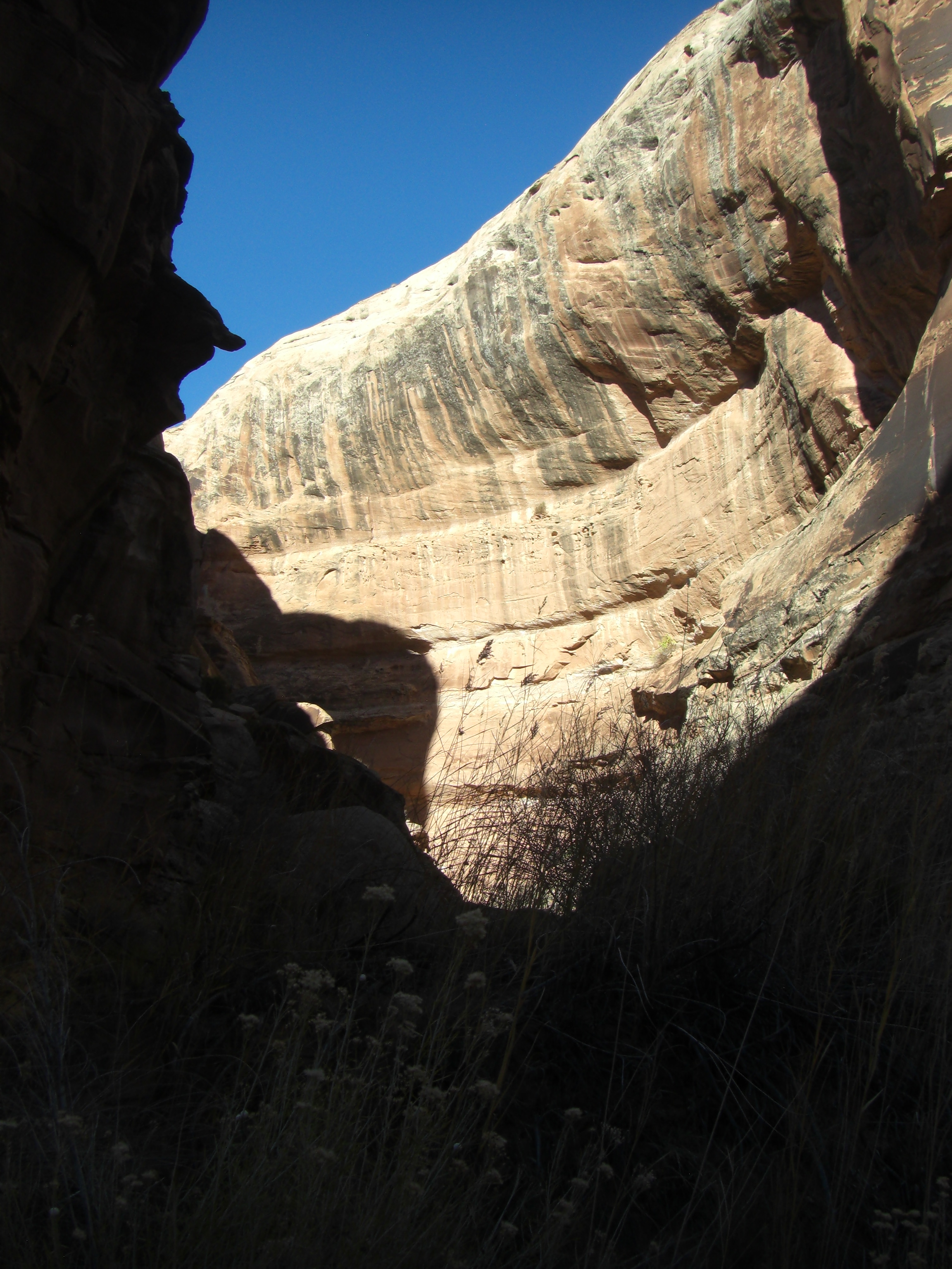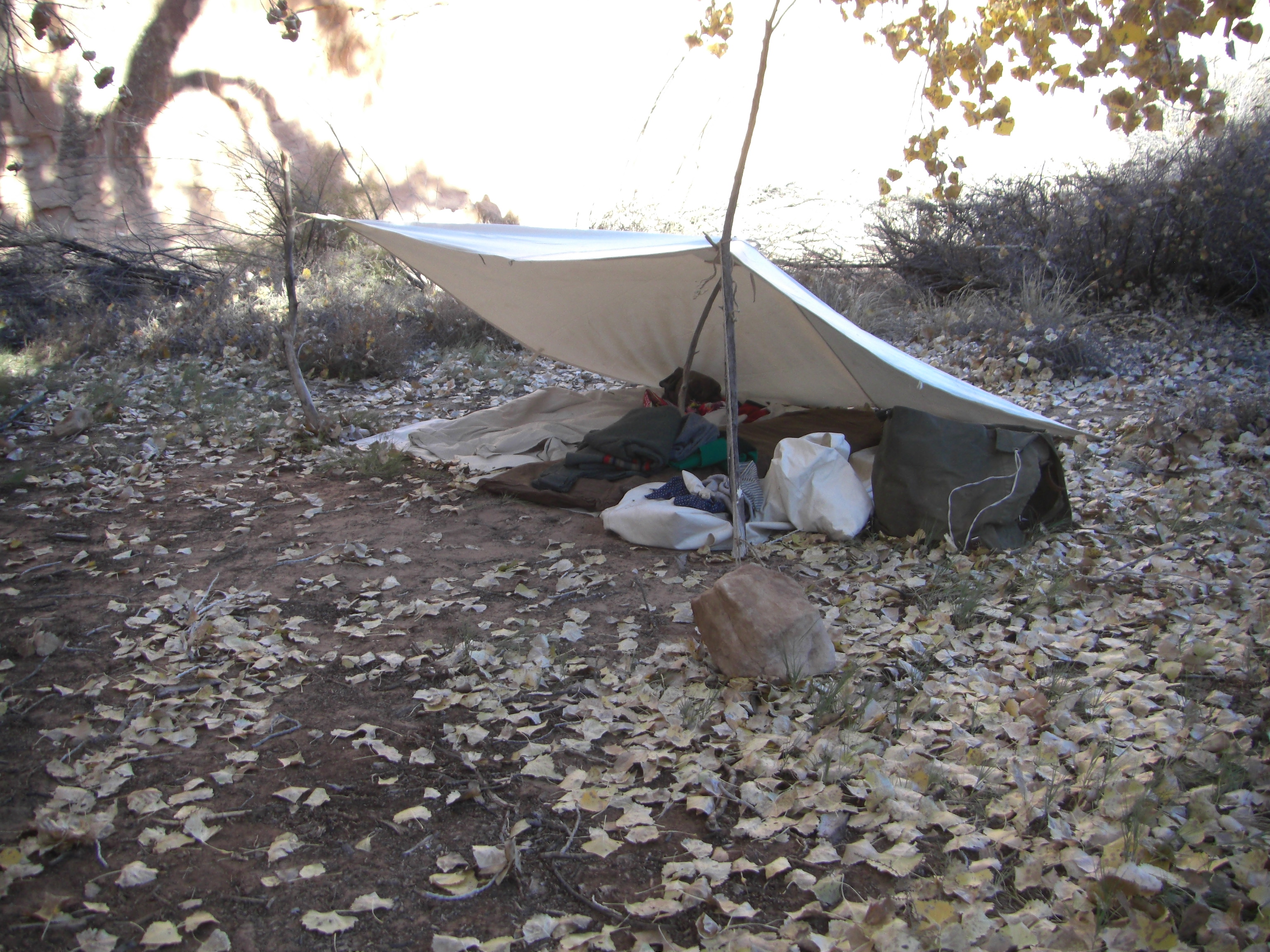 We set up our lean-to and I headed off up canyon to hunt and Aaron set out to lay some traps. I hiked/hunted my way up the main branch of Three Canyon and back to camp in the afternoon. With the side trips I made, I covered at least 4 miles on foot. I saw some tracks but never got a shot at anything. Three Canyon is composed of slot canyons. Slot canyons may be only 50 feet wide across and hundreds of feet high in places. These may be the only canyons of this type remaining since the inundation of Glen Canyon by Lake Powell.