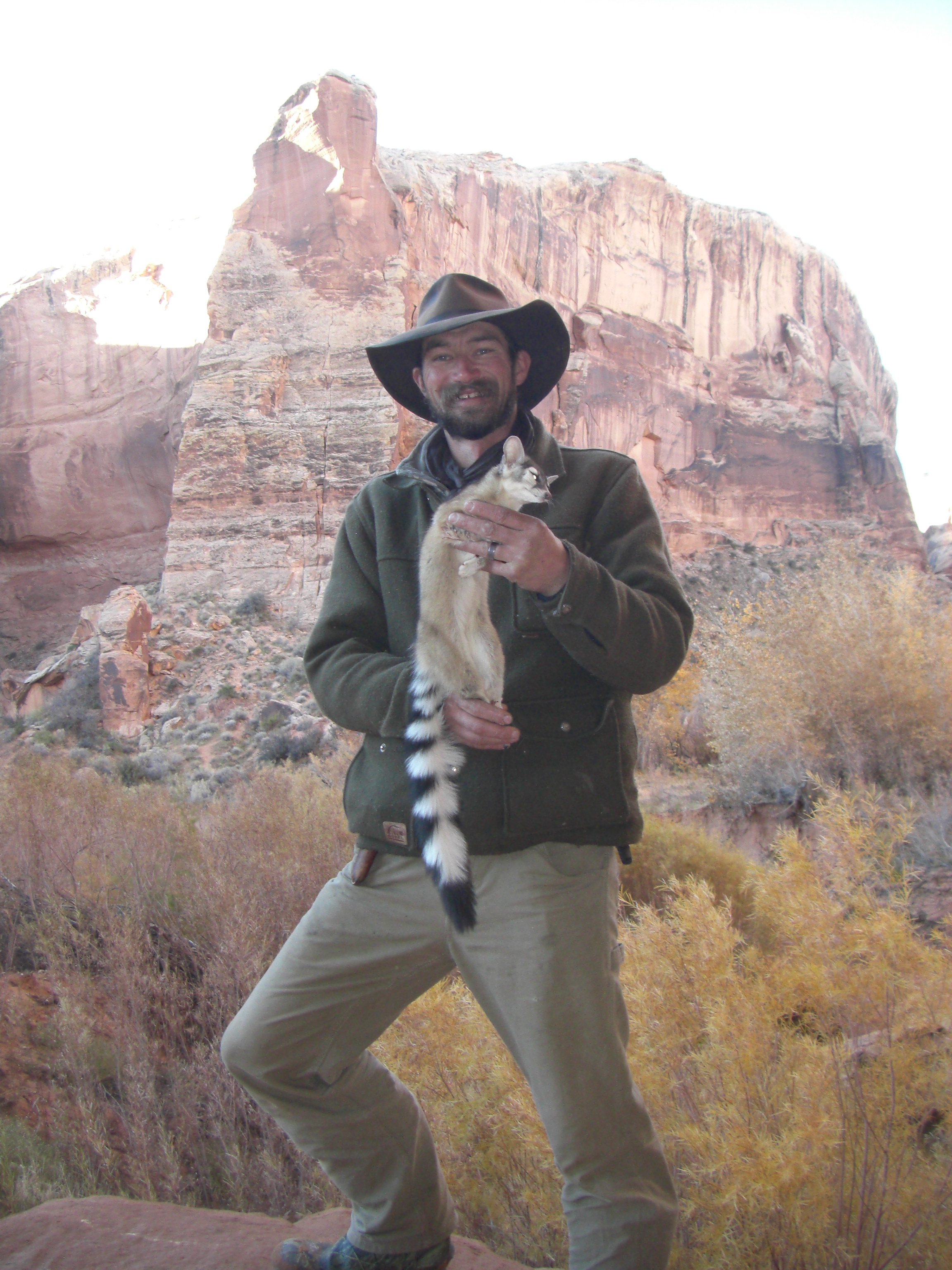 When we rolled out our beds I scooped out of the sand a hole for my hips and one for my shoulders. I had read about this in the past but I don’t do it very often. What a great difference this made in sleeping on the ground. I will have to make a habit of it when preparing my bed. 8 1/2 total miles for today. Day 4, Monday Nov 23, we got up with the sun so Aaron could check and pull our traps while I made coffee and broke camp. Aaron came back with a Ringtail and to quote my good friend, Darrell Nichols “with a smile so big you could barely see your face”!!