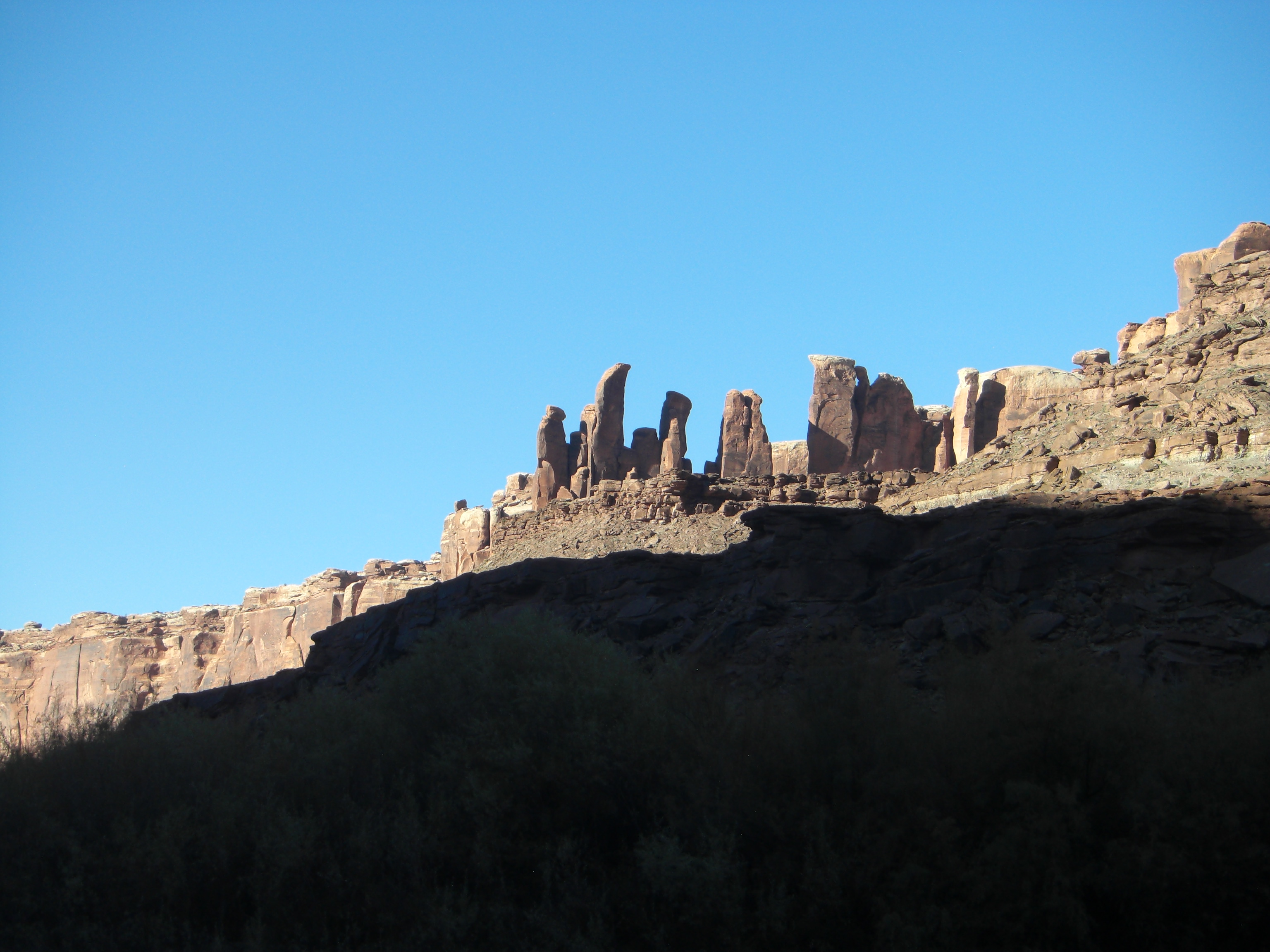 We arrived at Mineral Bottom at 1 PM, drove into Moab for some food then drove the river road up the Colorado to I-70 and home to Colorado. As can be seen from the pictures we had clear skies and warm fall weather during the day. Daily temps were in the 50’s & 60’s with night time lows in the 20’s & 30’s. The moon was waxing from 1st quarter to full, so our evenings were bright with moonlight.