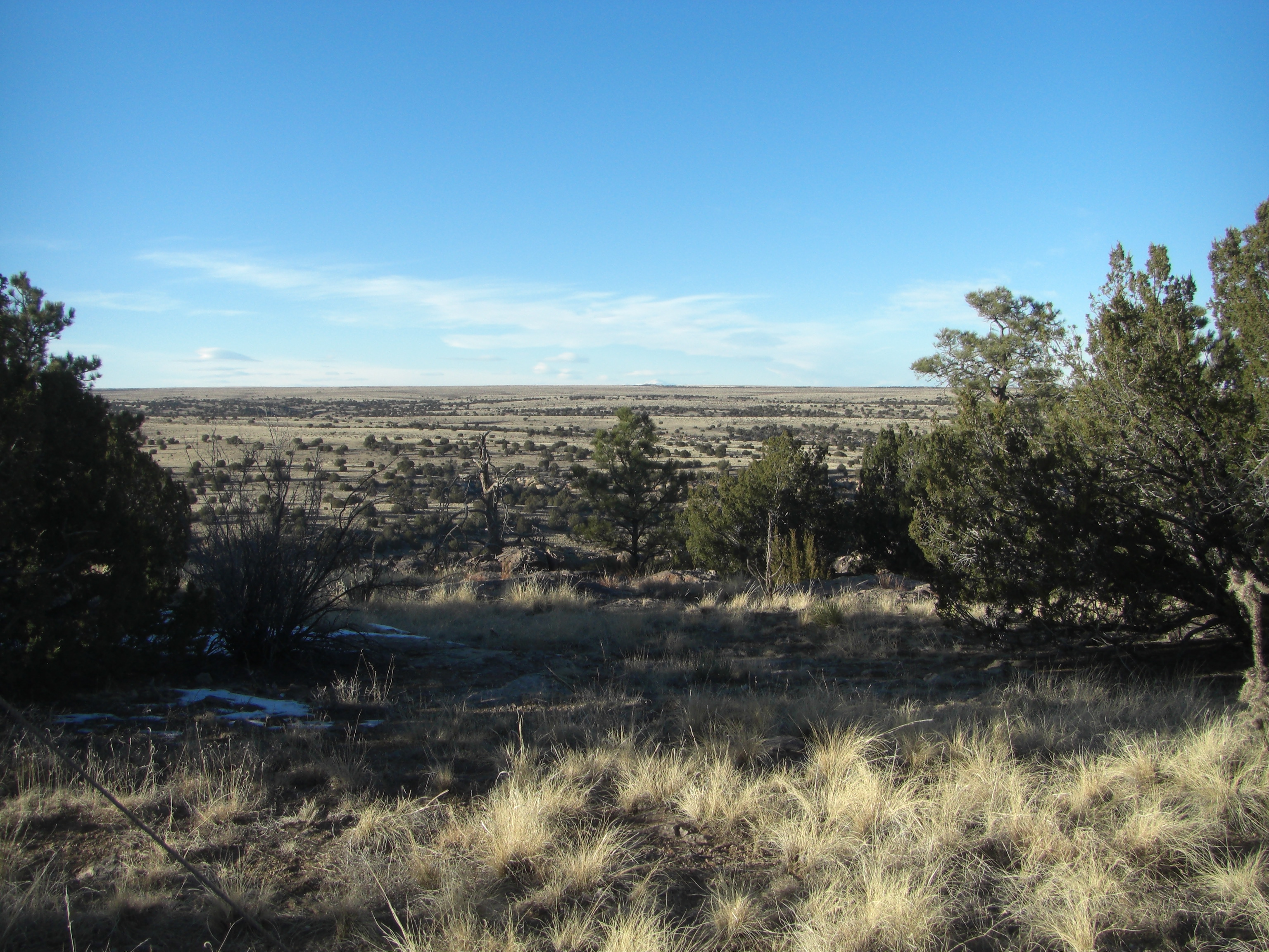 The sun came out as the clouds moved off and the temperature warmed into the upper 30’s. For this hunt I am using my sawed-off double barreled 20 gauge percussion shotgun. I have fired the right barrel 4 times and the left barrel is still in reserve. The country here is supposed to hold quail as well as rabbits, deer, antelope, Big Horn sheep and coyotes. I haven’t seen any birds or sign of them as yet. The prairie is grass covered with many cholla plants and prickly pear cactus. The edges and gullies are sparsely covered with cedar trees and the occasional Ponderosa pine.