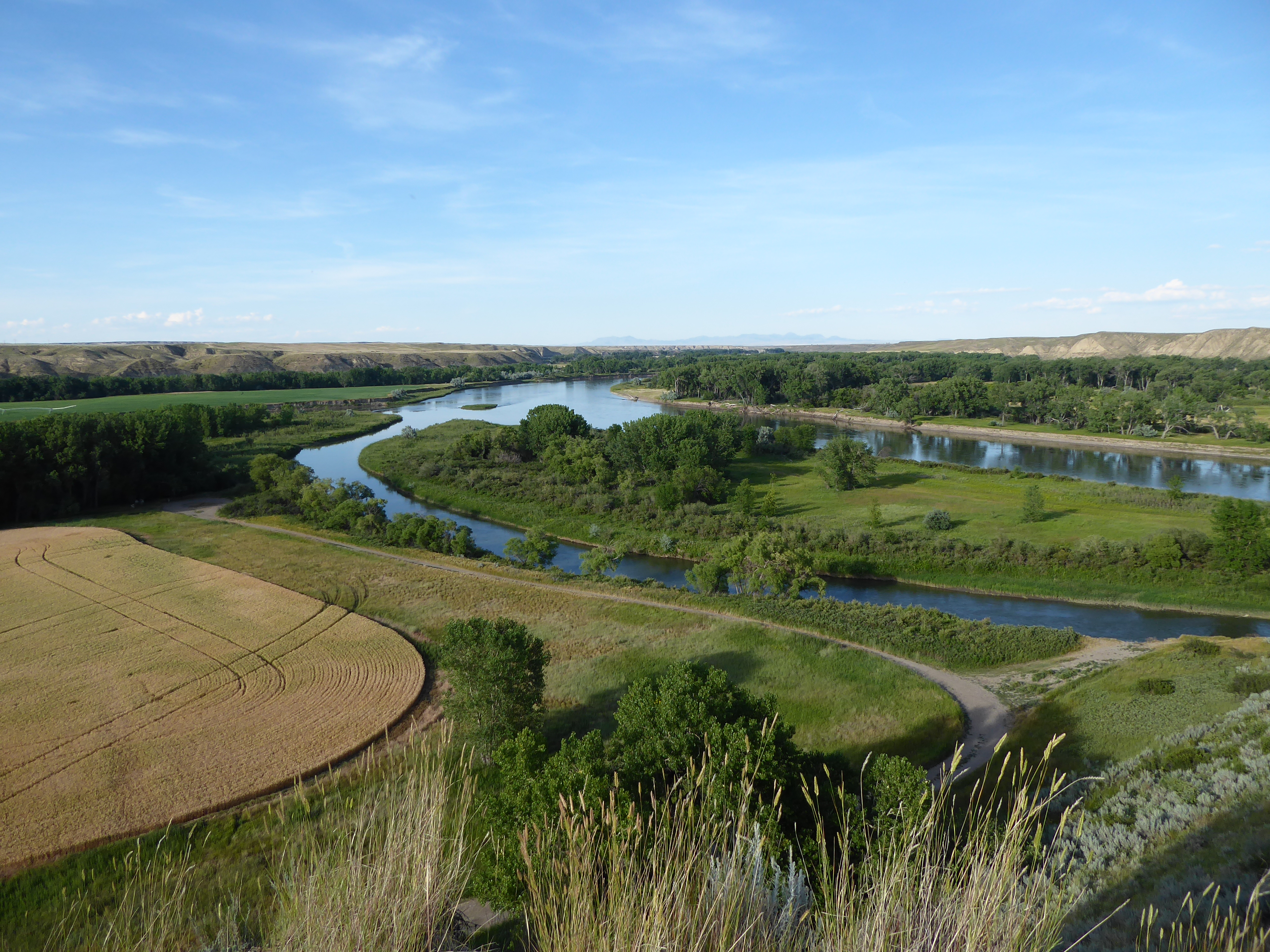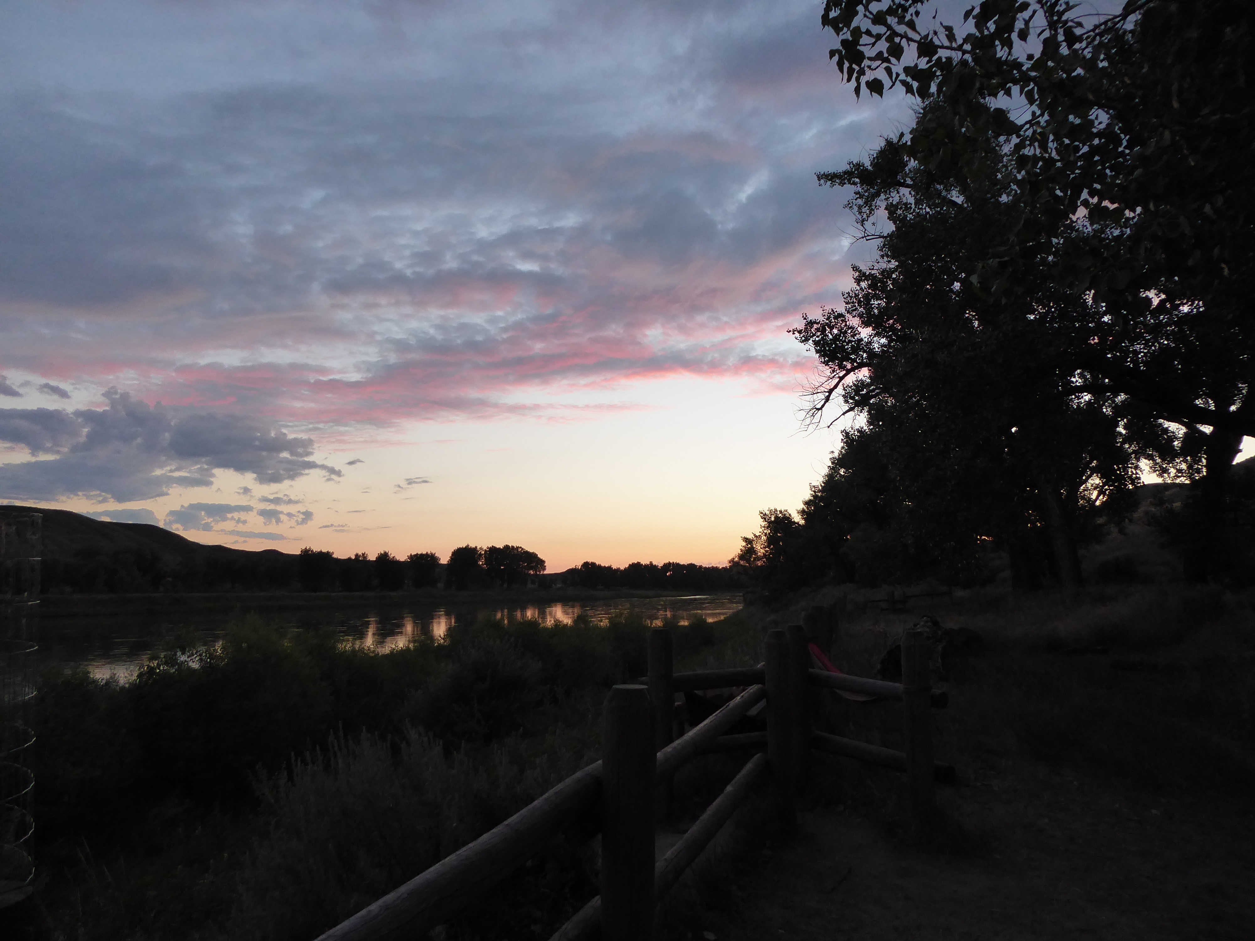 Day Two – 7/1/17, We traveled across Wyoming to Billings, MT where we stopped at a Walmart to resupply. We arrived at Ft. Benton at 6 pm, called Mike Nottingham and met him and his wife, Linda in Loma at 7 pm. We set up camp at Wood Bottom [Mile 20], rearranged our gear & settled in for the night.