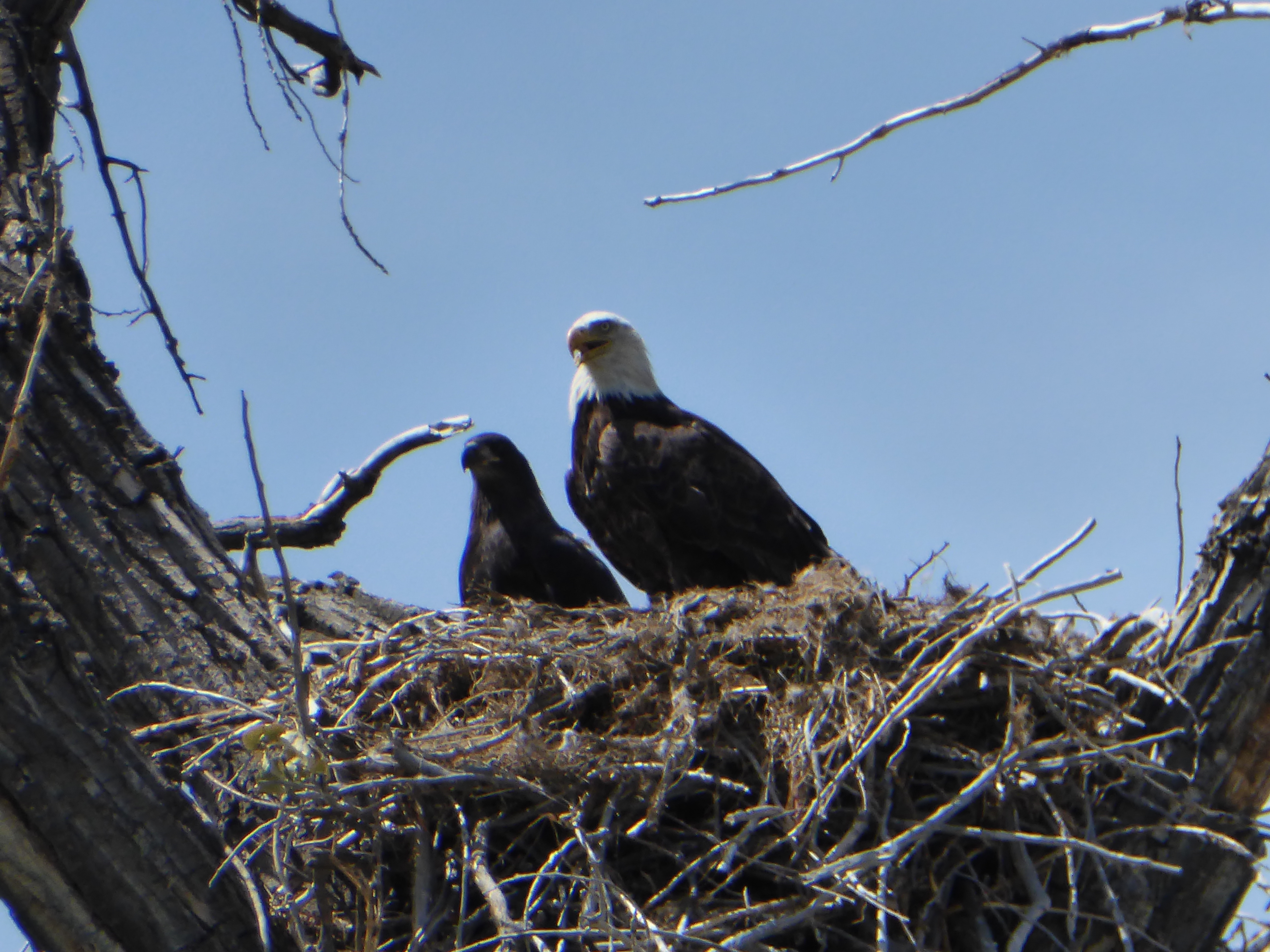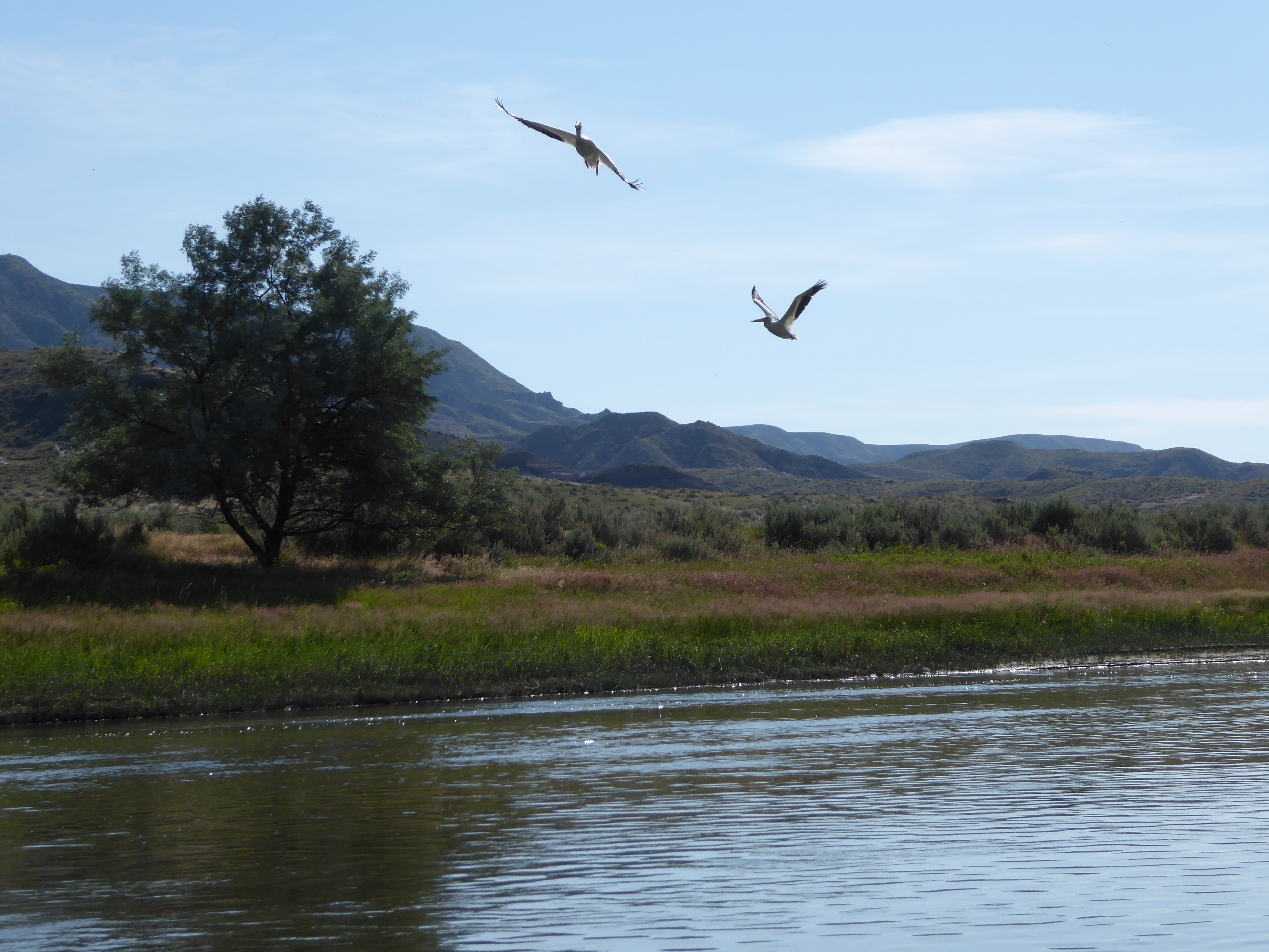 We paddled 26.5 miles today. We saw Bald eagles, Golden eagles, osprey, northern harriers, many, many mule & whitetail deer, turtles, fish, beaver, fox, pelicans, Canada geese, loons or mergansers, Blue heron, goldfinches, carp and a King Fisher.