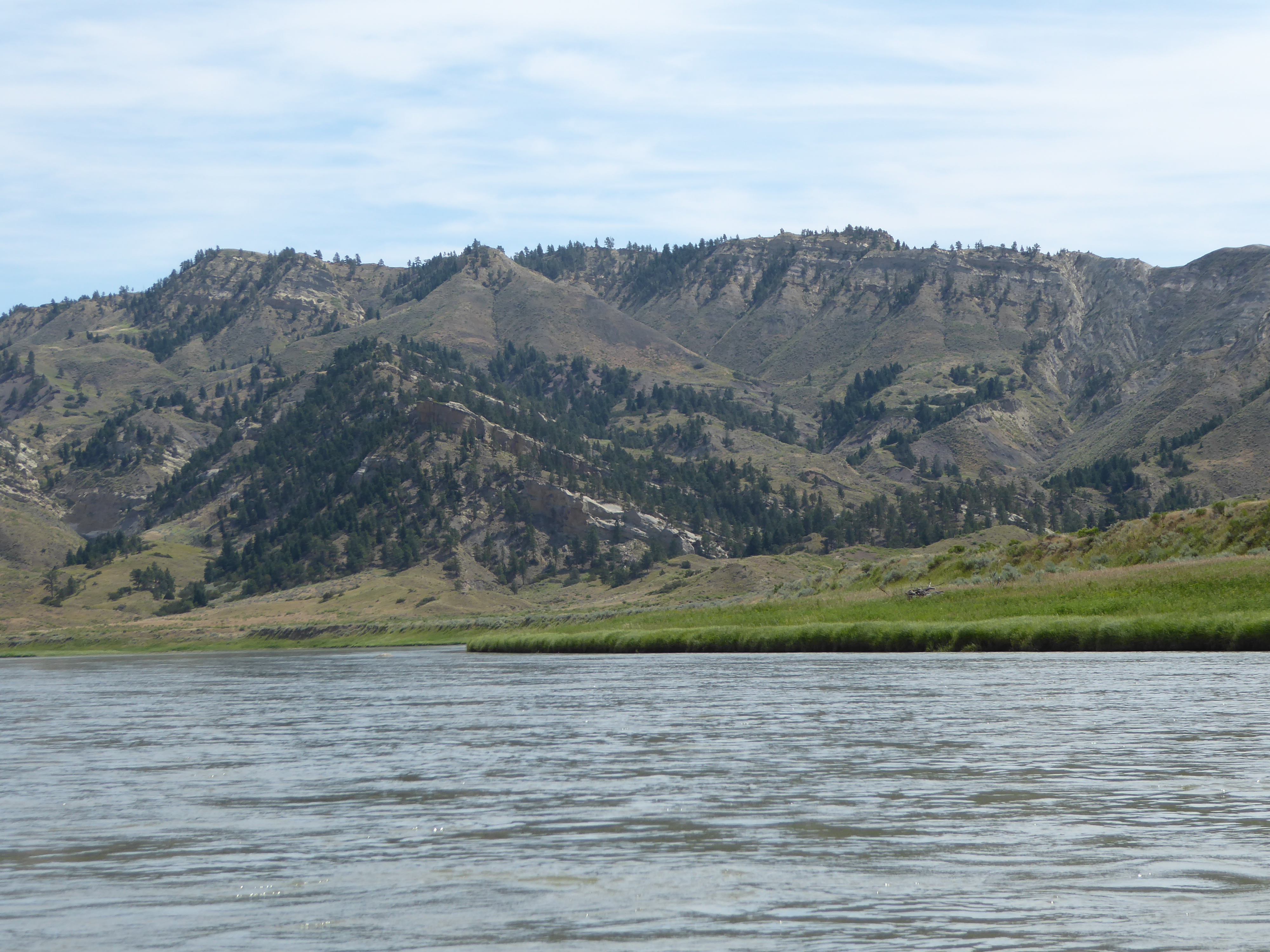 Day Five – 7/4/17, Independence Day! Today, Tuesday we arose at sunup and made it to Judith Landing by noon. Along the way we heard pheasants crowing and saw some Osprey as we did on Day Three. We saw many crows for the first time, this morning. It was not as hot today and we had a good downstream wind. At Judith Landing, we filled up with water, used the restrooms and paid our river fees.