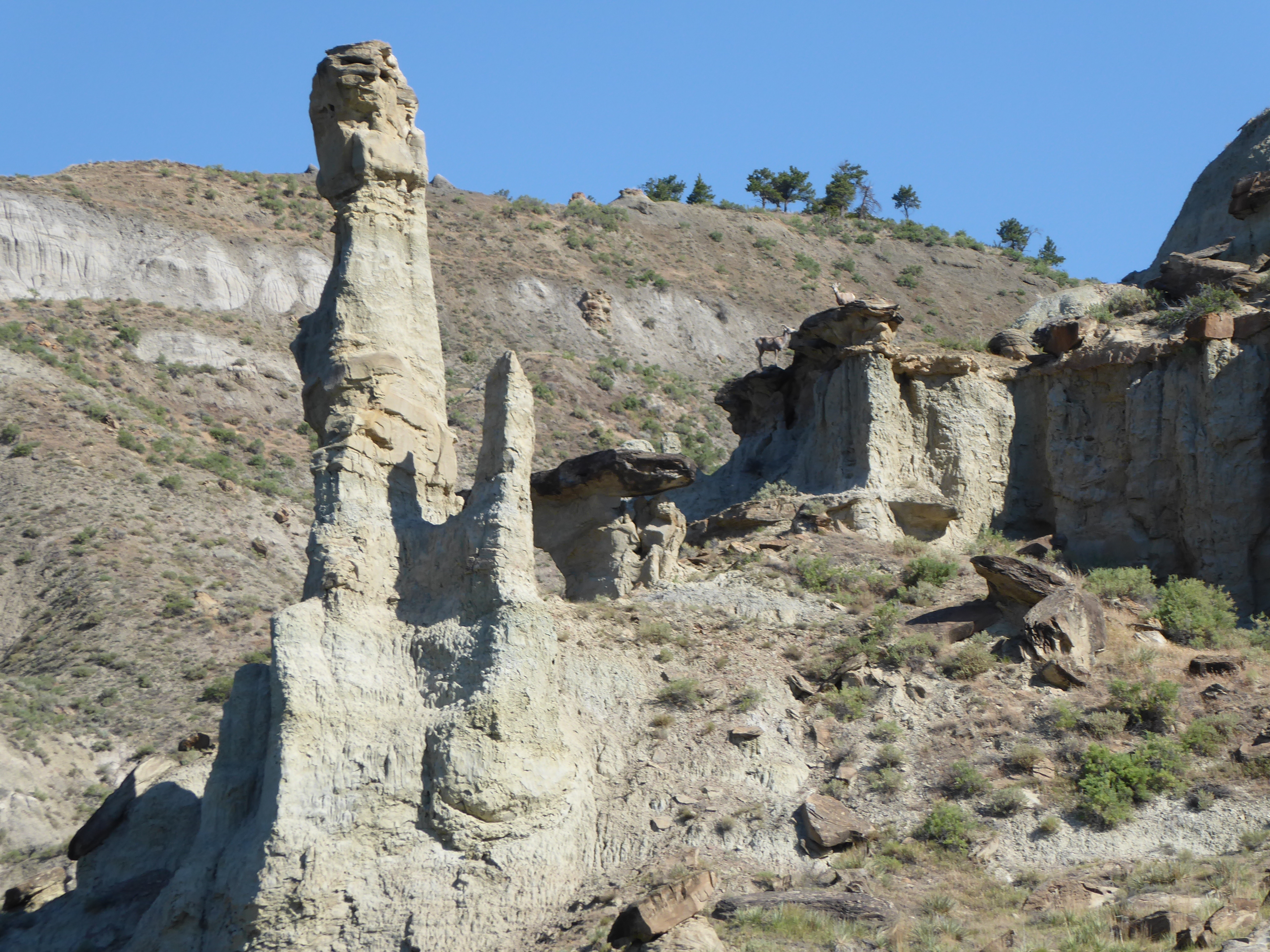 We saw at least 4 different groups of sheep today as we paddled along. While traversing a back channel, we startled 3 deer and one of the fawns ran in front of us and jumped into the river and swam across right in front of us. That was pretty cool. There are many willows along the river here and much beaver sign. I saw a buck mule deer in velvet on one of the islands today.
