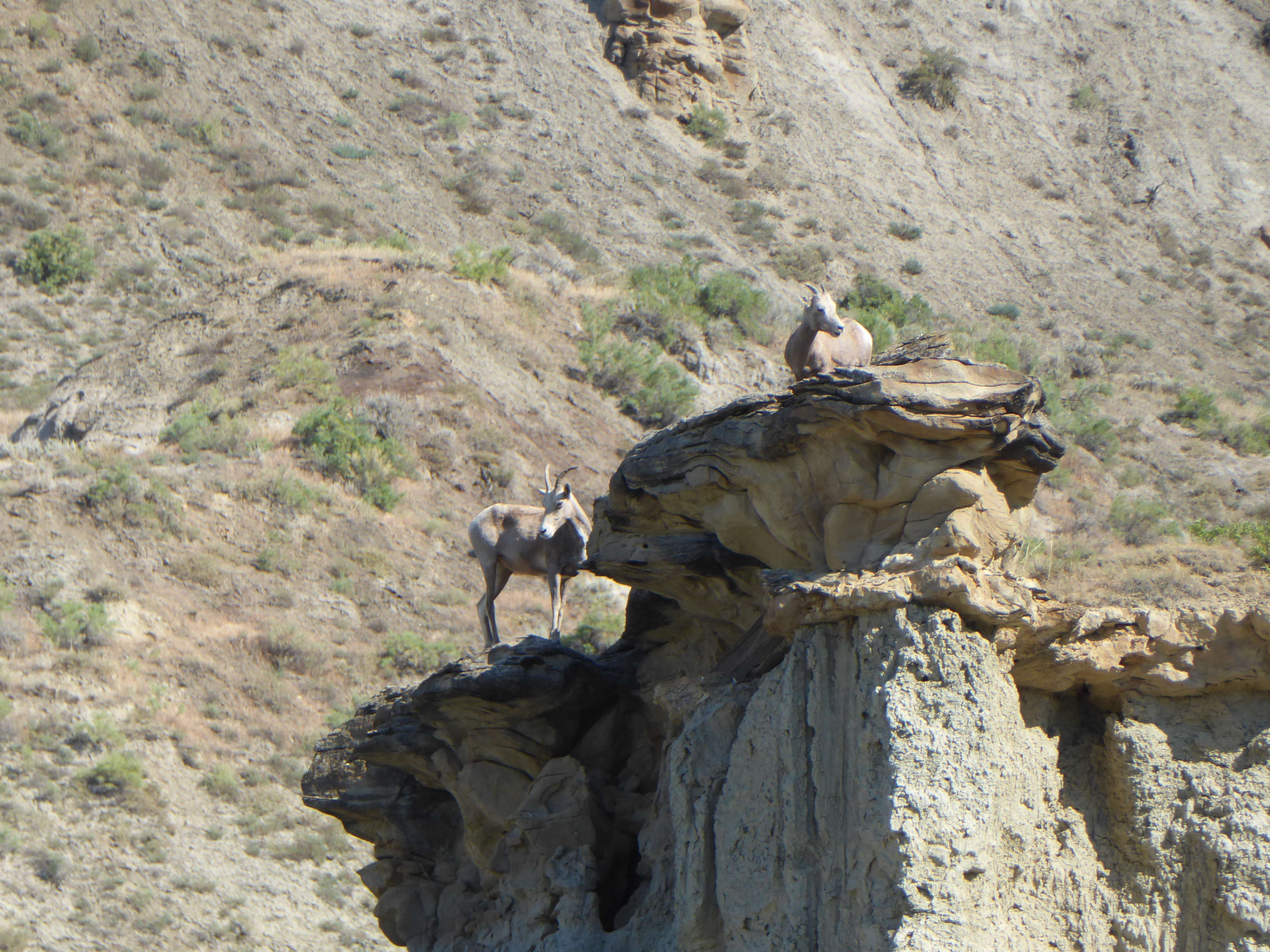 Aaron caught a bull snake that I spotted in one of the sheds. We paddled on down to the McCormick-Stafford ferry and stopped to use the toilets. After only 15.5 miles on the river, we stopped to camp at Two Trees boat camp. While landing, and off-loading our gear, we saw a group of Bighorn sheep ewes and lambs on the far bank.
