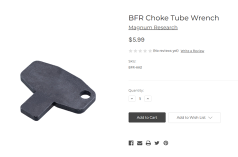 I looked up the Magnum Research BFR at https://www.magnumresearch.com/bfr-biggest-finest-revolver/ and found their choke tube and choke tube wrench listed “in stock” on their website.